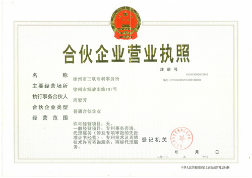 | 徐州市三聯(lián)專(zhuān)利事務(wù)所是2003年經(jīng)國家知識產(chǎn)權局專(zhuān)利局批準成立的、以專(zhuān)利代理和專(zhuān)利訴訟為主的綜合性的知識產(chǎn)權中介服務(wù)機構,在國家專(zhuān)利局的代碼為:32220,目前主要的經(jīng)營(yíng)范圍包括:專(zhuān)利技術(shù)及其他技術(shù)許可咨詢(xún)服務(wù);商標代理服務(wù);版權代理服務(wù);科技項目咨詢(xún)服務(wù)等。本所目前分為專(zhuān)利部、項目部和流程部三大部門(mén)。其中,在專(zhuān)利部中擁有長(cháng)期從事專(zhuān)利代理的專(zhuān)利代理人、高級工程師,也有具有現代知識的青年專(zhuān)利代理人、工程師,知識結構合理,且年齡結構合理:其中,大多數為大學(xué)畢業(yè)后在企業(yè)工作后來(lái)本所工作的,即具有專(zhuān)業(yè)方面的實(shí)踐經(jīng)驗。在專(zhuān)利培訓、企業(yè)專(zhuān)利管理方面具有較豐富的經(jīng)驗,擁有能夠講課的人員數余人,為企業(yè)進(jìn)行多期專(zhuān)利培訓,并協(xié)助建立企業(yè)專(zhuān)利管理制度。 |
